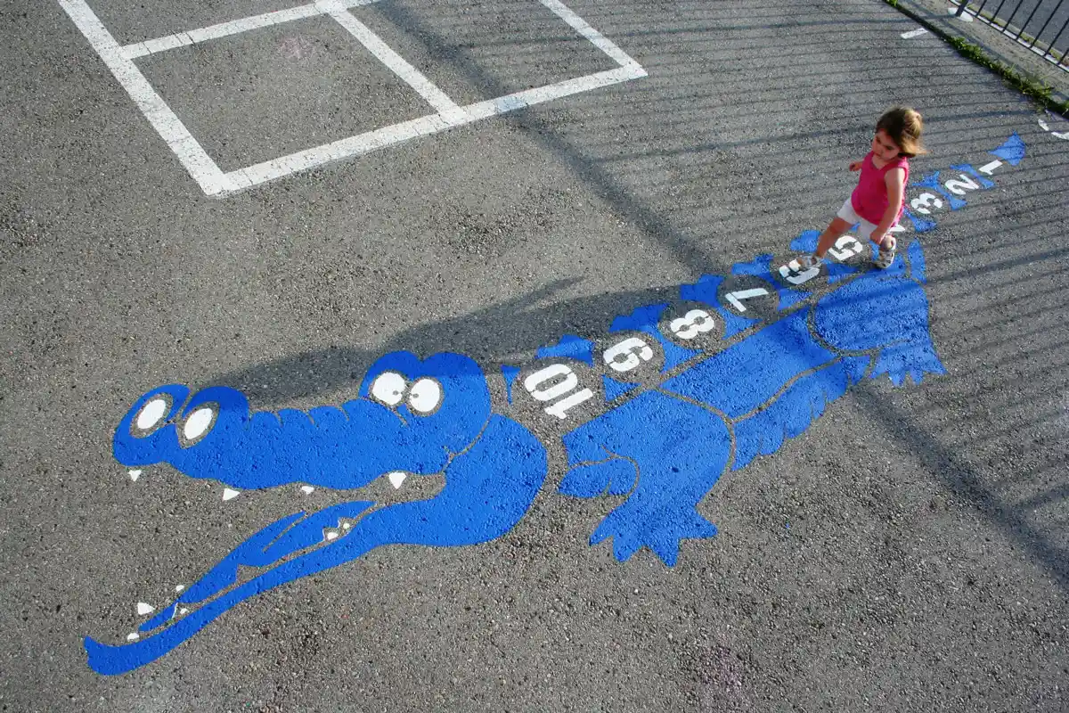 Hüpfspiele beispielsweise sind seit jeher äußerst beliebt. In früheren Zeiten wurden diese einfach mit weißer oder bunter Kreide auf den Boden gezeichnet, die Kinder haben ihrer Kreativität freien Lauf gelassen. Leider sind diese Kunstwerke nach dem nächsten Regen wieder weg.
